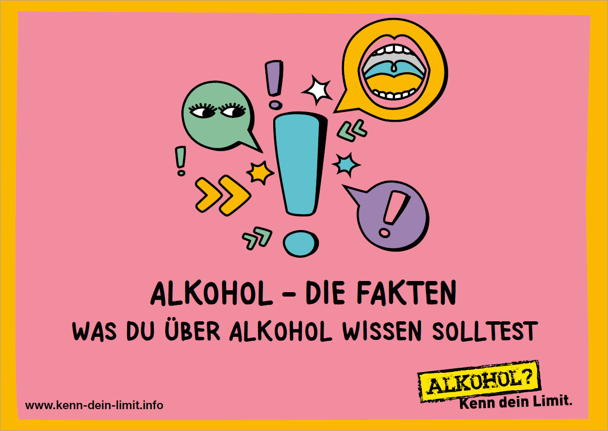 Die Broschüre "Alkohol - Die Fakten" zur Kampagne "Alkohol? Kenn dein Limit." stellt den Jugendlichen die wichtigsten Informationen und Fakten in abwechslungsreicher Art und Weise zur Verfügung.
