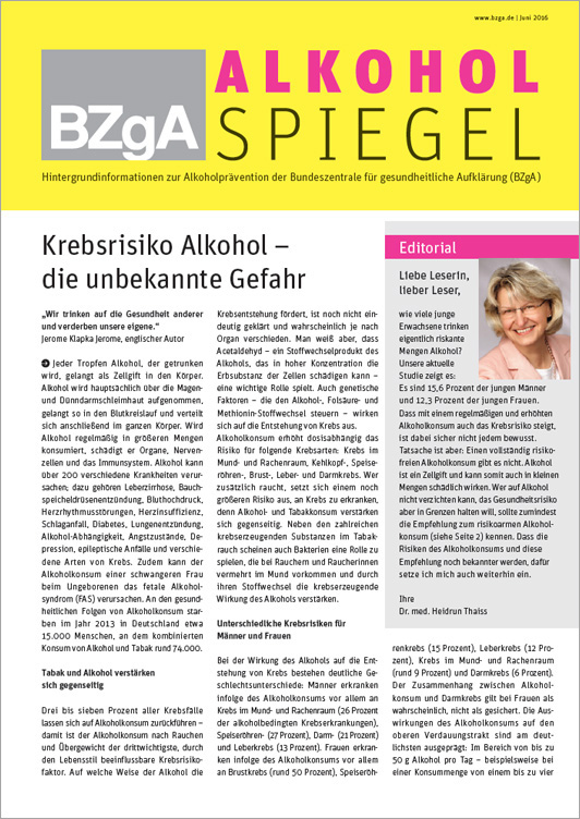 Der Alkoholspiegel ist nicht mehr als Printmaterial erhältlich,nutzen Sie die Download-Möglichkeit des Artikels. Das spart nicht nur Kosten, sondern ist auch umweltfreundlich.