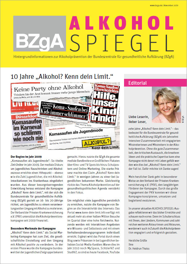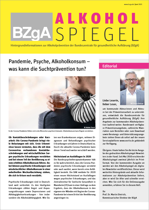 Auf dieser Seite stehen Ihnen alle Ausgaben des Alkoholspiegels der Jahre 2009 bis 2021 zum Download zur Verfügung.