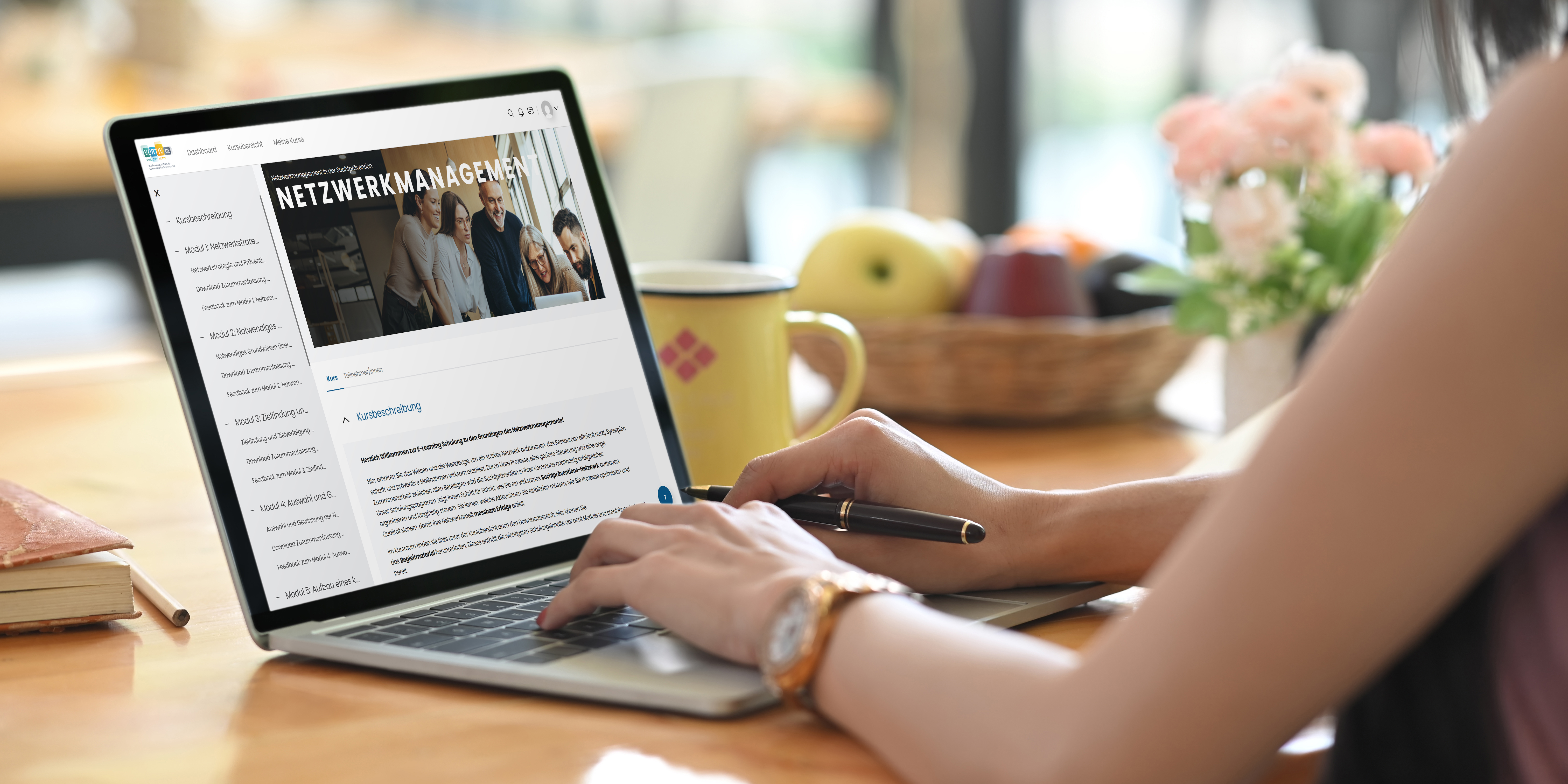 Antworten auf diese und viele weitere Fragen erhalten Sie in der Online-Schulung „Netzwerkmanagement“ von VORTIV. In acht Modulen lernen Sie die grundlegenden Theorien und Methoden sowie Beispiele aus der Praxis kennen. Für die gesamte Schulung mit allen Modulbausteinen sollten Sie etwa zwei Stunden einplanen. Wir empfehlen, die kompletten Schulungsinhalte anzusehen, Sie können sich aber auch einzelne Module oder Modulbausteine heraussuchen, die für Sie besonders relevant sind oder die Sie besonders interessieren. Ihr Lernfortschritt wird gespeichert, Sie können sich jederzeit erneut anmelden um Inhalte zu wiederholen oder sich mit weiteren Modulen zu beschäftigen.