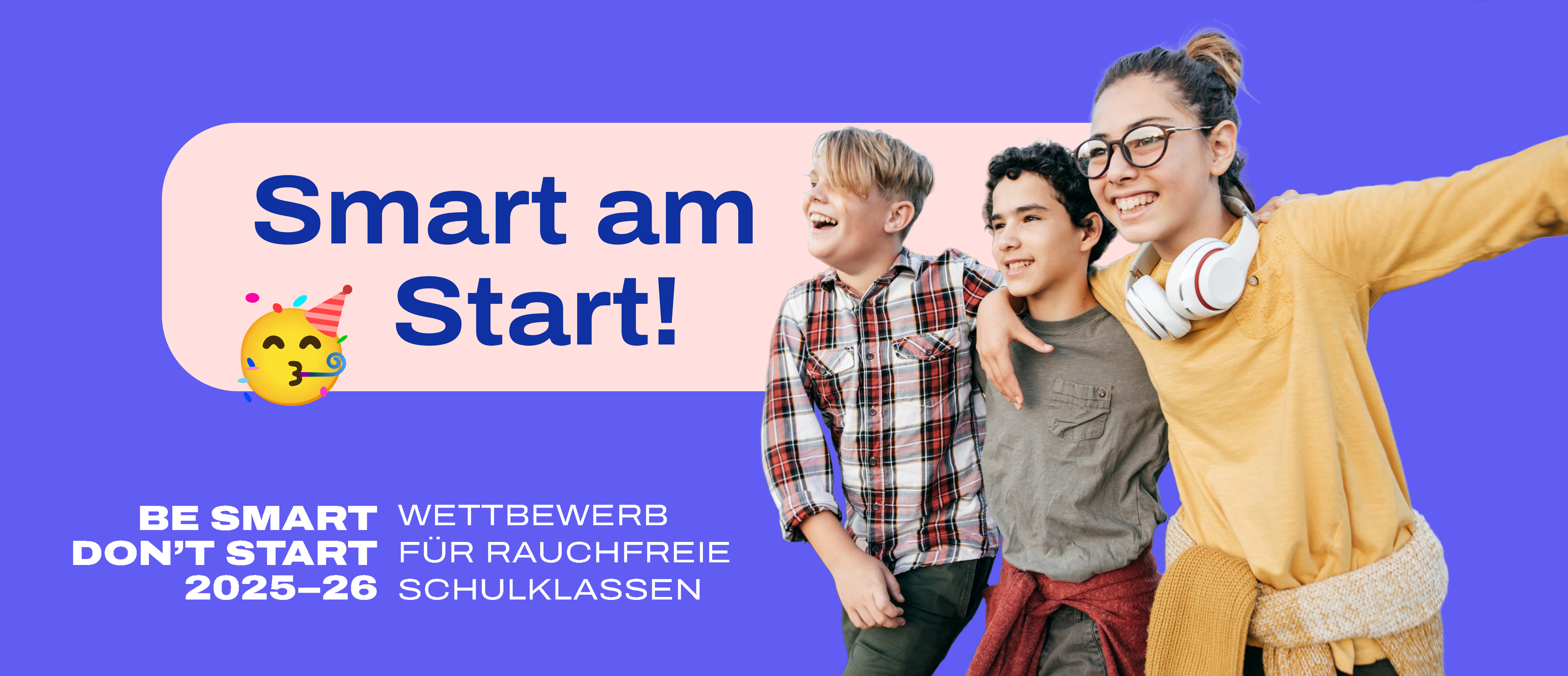 Der bundesweite Wettbewerb „Be Smart – Don't Start“ ist ein nachweislich wirksames Präventionsprojekt. Es motiviert Schulklassen, rauchfrei zu bleiben und besteht bereits seit über 25 Jahren. Lehrkräfte können ihre Klassen online zum Wettbewerb anmelden. Die Teilnahme ist kostenfrei.